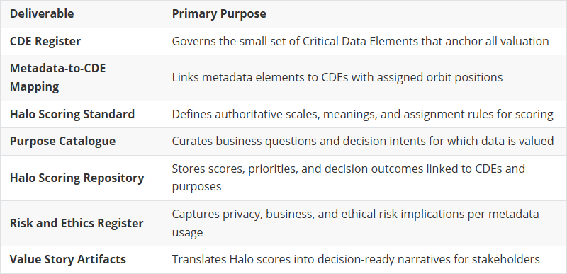 Every Operating Deliverable exists to change behavior, not to document for documentation’s sake. The Data Quality Health Scorecard is not a report - it is the primary activation interface. The Halo Scoring Repository is not a database - it is the decision backbone that drives prioritization.